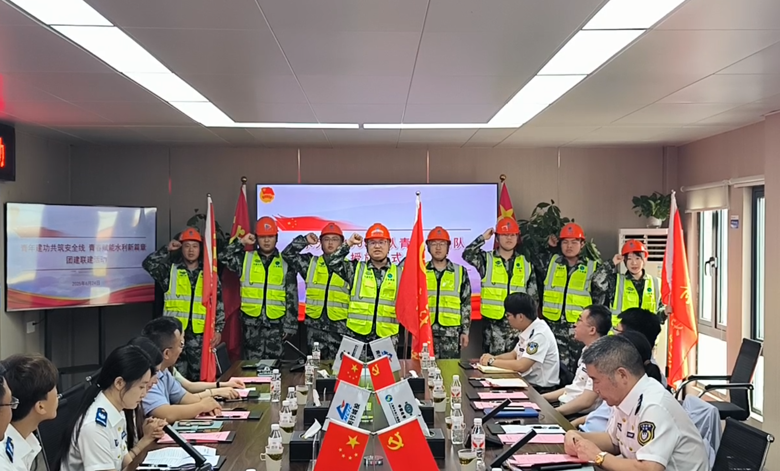 “暴雨炼脊梁,激流见担当,今日立誓言,使命扛在肩。恪守工期保节点,安全生产记心间。创新攻坚破难关,联建共建谱新篇。树行业标杆,谱时代华章!……” 青年突击队现场宣誓声铿锵有力。