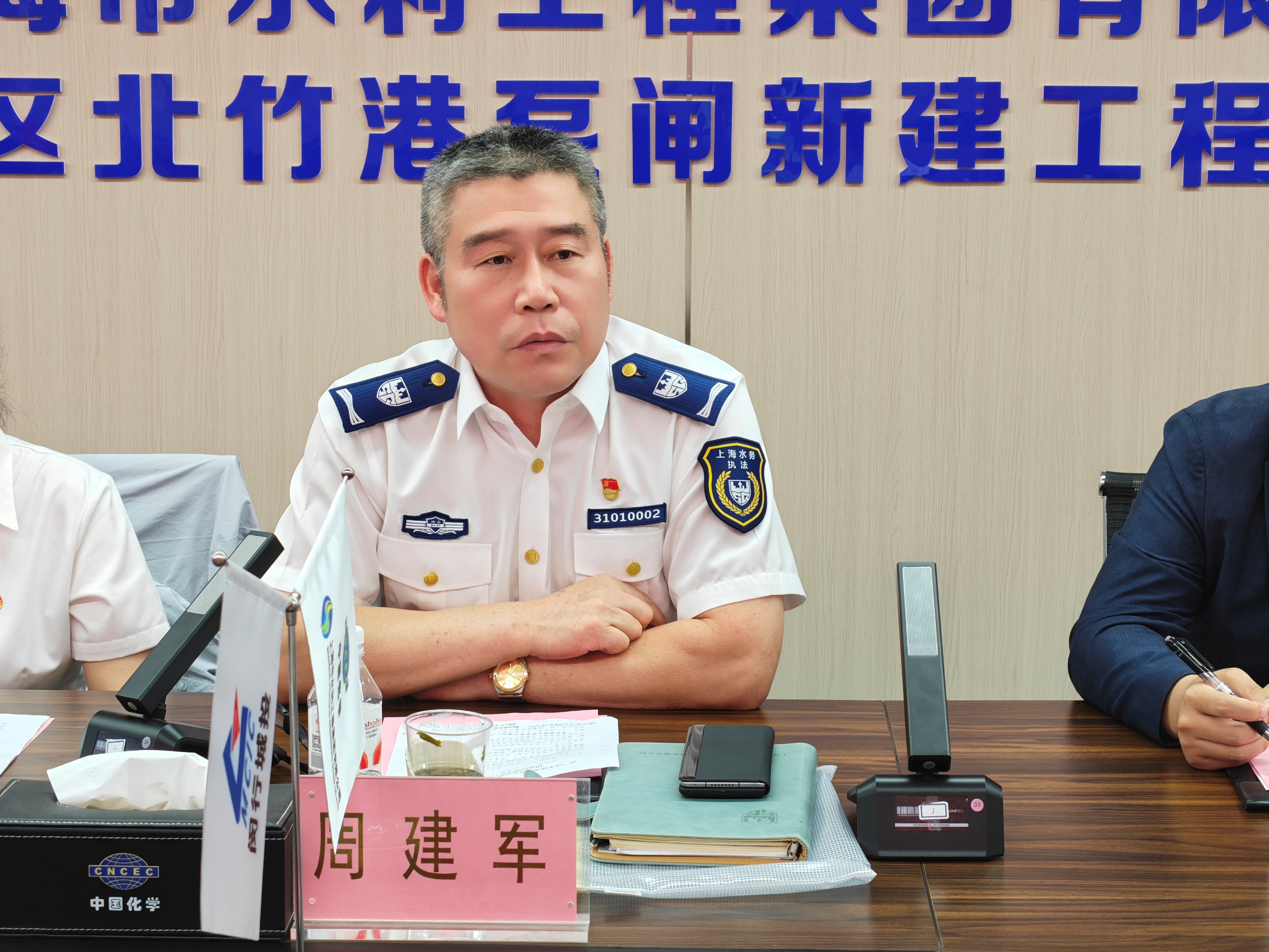 与会人员实地参观上水集团承建的上海市重大工程——闵行区北竹港泵闸新建工程现场,听取了上水青年代表关于工程建设情况的介绍,详细了解工程重难点、新工艺应用及工程即将发挥的效益等。