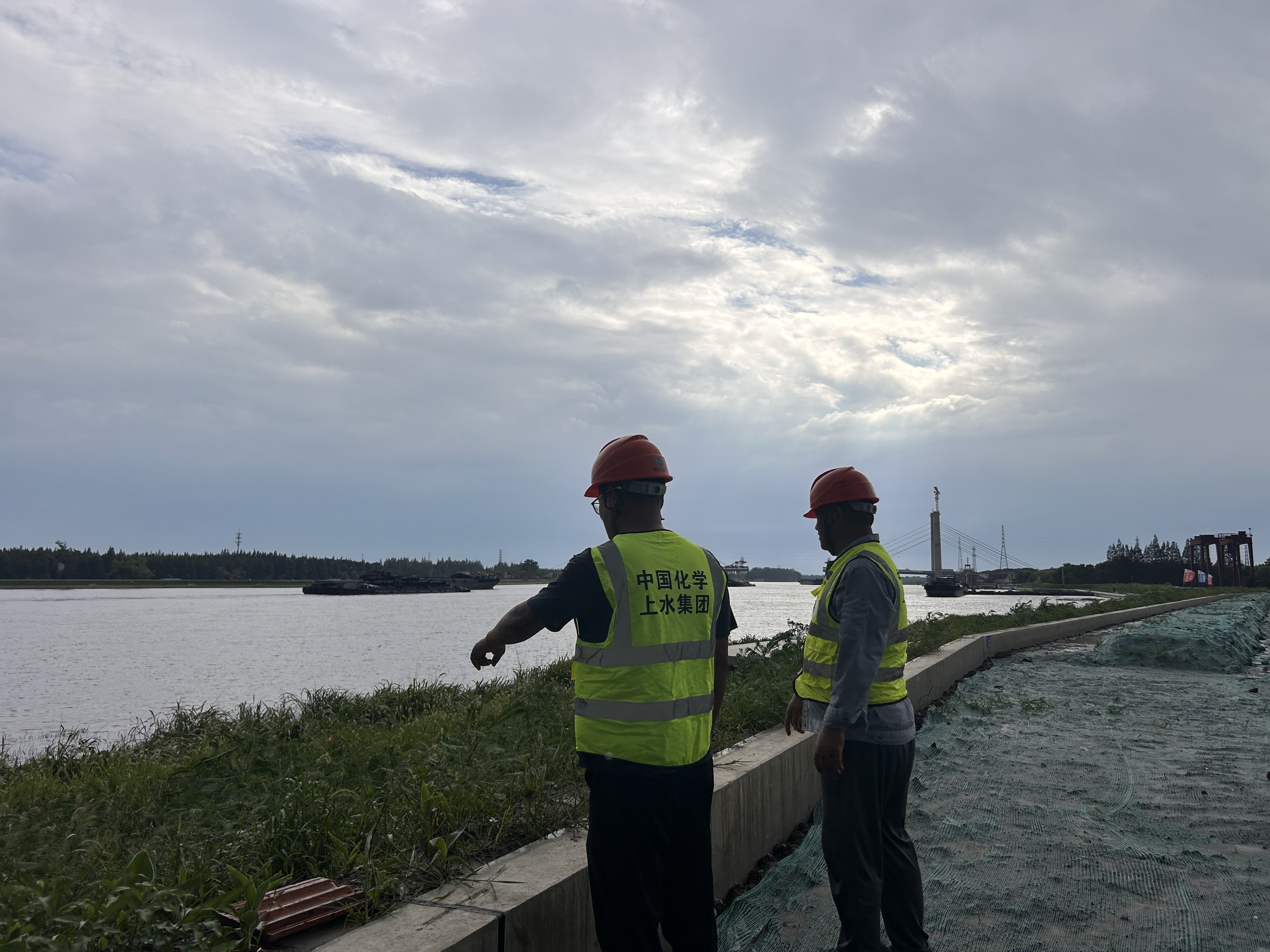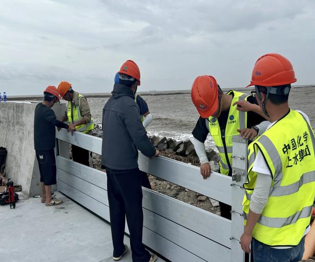 上水集团深入贯彻落实习近平总书记关于防汛救灾工作的重要指示精神,认真落实上级各项要求部署,公司防汛防台指挥中心和各小组负责人靠前指挥,各项目防汛防台领导小组、应急救援队伍、上水防汛应急抢险队等根据防汛防台预案和预警信息进入应急状态,在台风来临前开展项目巡查,排查安全隐患,随时做好应急抢险准备,将“人民至上、生命至上”理念贯穿防御全过程。加固排险,筑牢物理屏障: 施工现场全面进入“加固模式”,一线堤防关闭闸门保证防汛体系封闭;临建设施屋顶进行压载加固;现场围挡加固措施检查;脚手架安全网临时拆除;移动设备转移至安全地带等,最大限度消除风险隐患。
