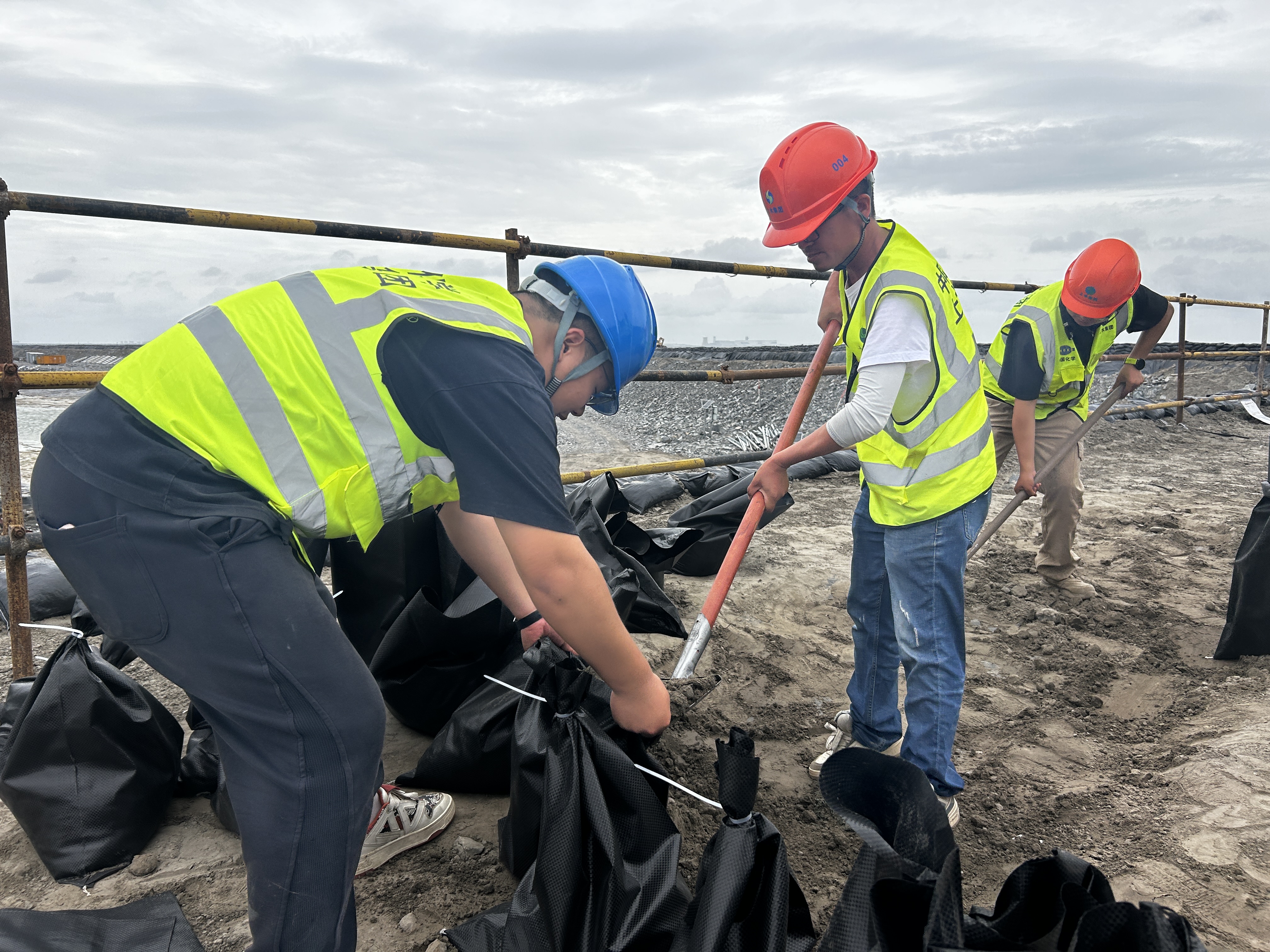 加固排险,筑牢物理屏障: 施工现场全面进入“加固模式”,一线堤防关闭闸门保证防汛体系封闭;临建设施屋顶进行压载加固;现场围挡加固措施检查;脚手架安全网临时拆除;移动设备转移至安全地带等,最大限度消除风险隐患。